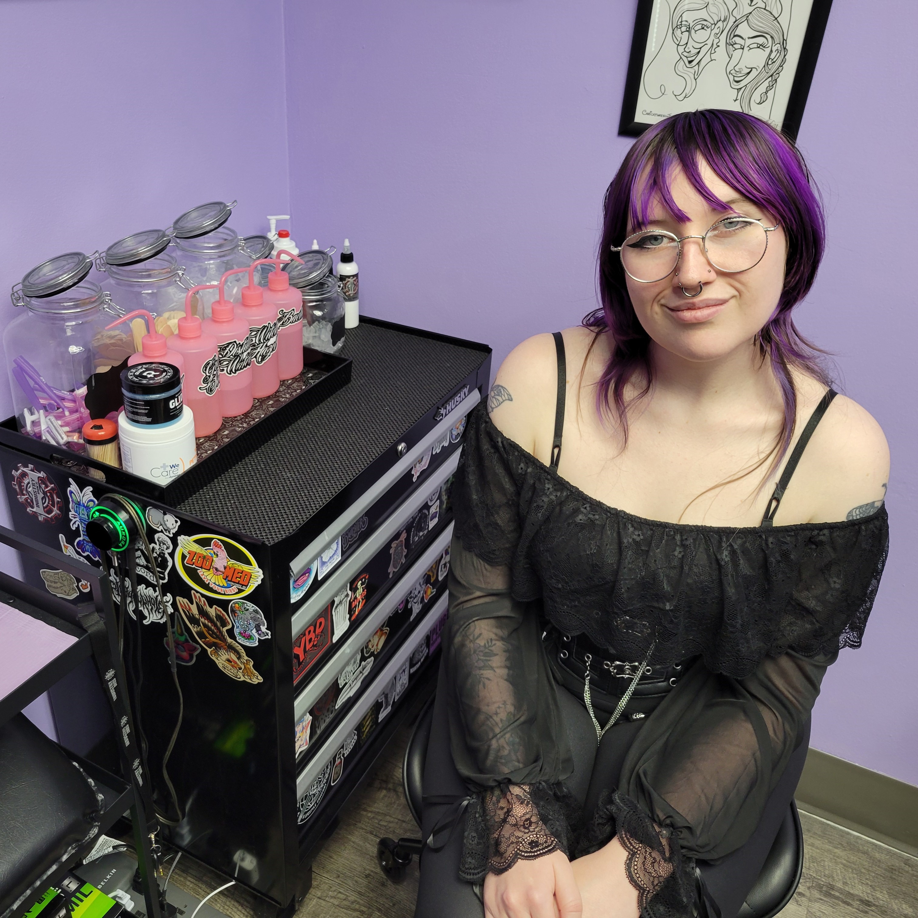 Not only do I have a lot of experience working with physical mediums like drawing and painting, I also dabbled in some digital art & graphic design in college, which ended up really helping me while learning to tattoo! I still love to draw and paint just as much as I used to, but no other medium compares to tattooing for me, it’s my greatest passion and I am so grateful to be able to have a career I love so much.